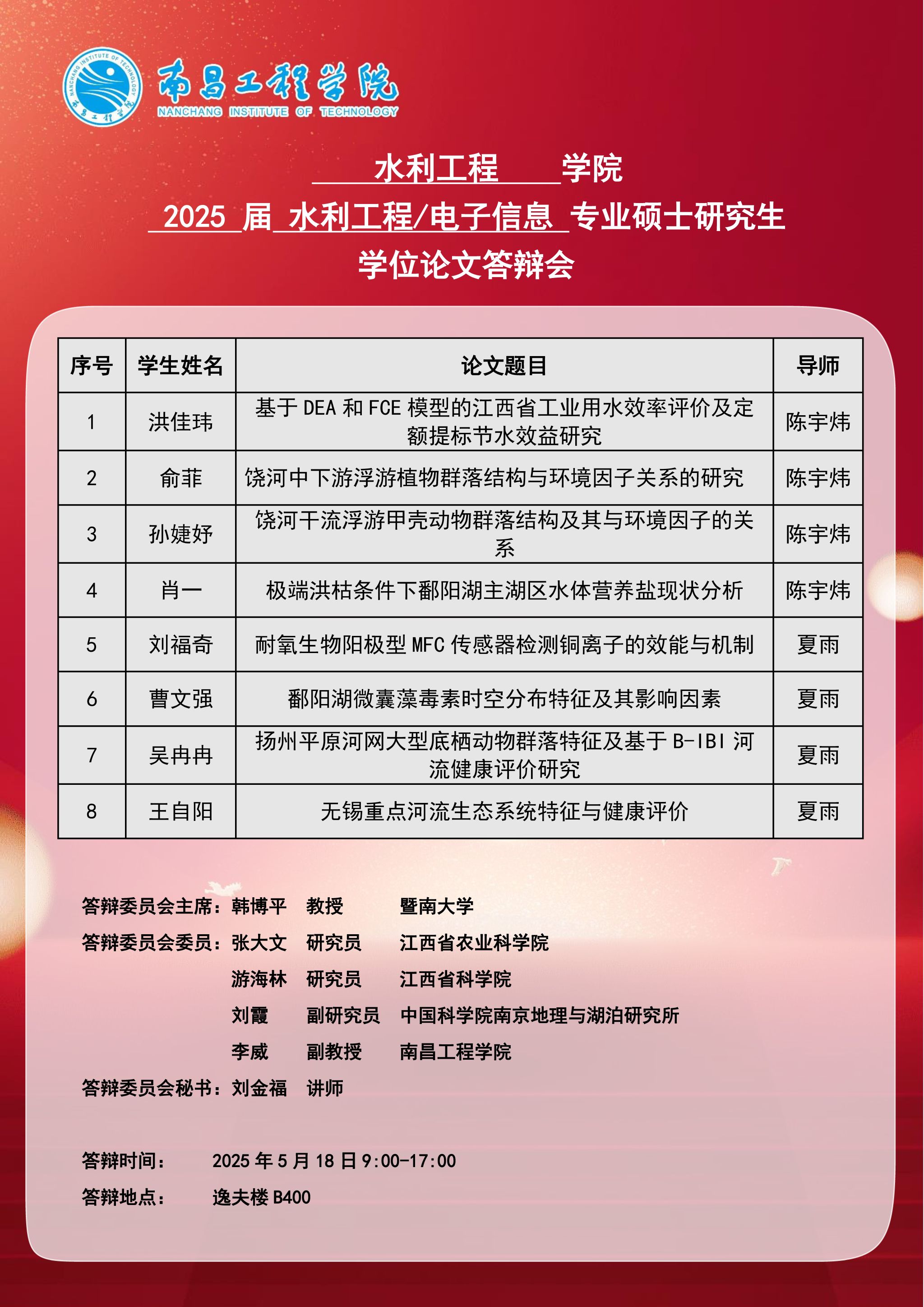 2025届硕士研究生学位论文答辩安排2