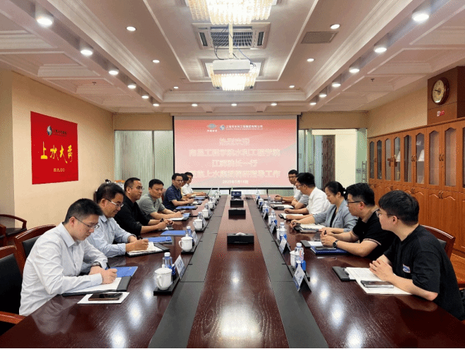 在上水集团调研交流期间,集团总经理张在鹏、工会主席何倩、总工程师王晓嘉等出席活动,学校上海校友会副会长金峰陪同调研。张在鹏首先对江辉一行的到访表示热烈欢迎,详细介绍公司发展历程、企业资质、荣誉奖项及近年来完成的重要工程项目。江辉对上水集团的热情接待表示感谢,并从历史沿革、专业设置、学科建设、师资队伍、人才培养模式、教学科研平台及团队建设等对学院做了详细介绍。双方围绕水利类本科及研究生人才培养、实习实践基地建设、校企教材编撰、学生就业、人才交流、产学研融合及科技项目合作等方面展开了深入的交流。