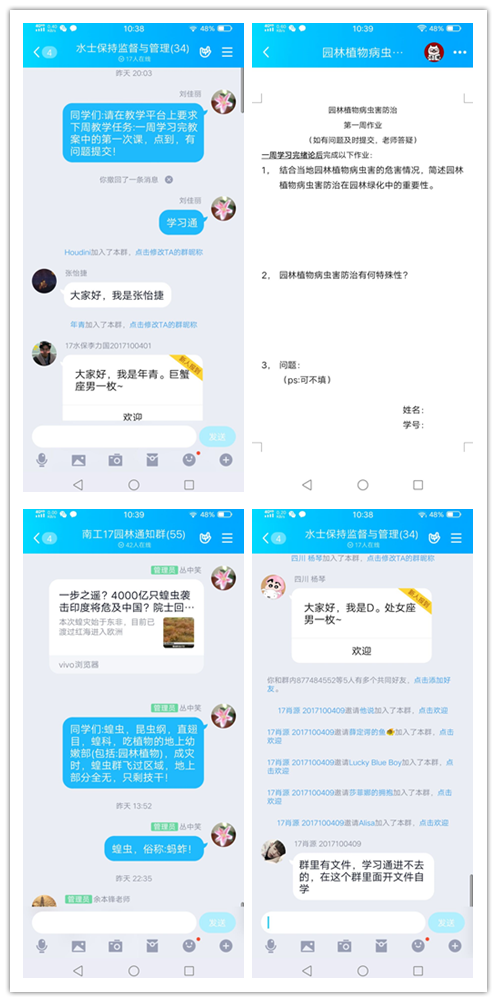 经过两天的线上教学运行,一些在线平台由于访问量过大而出现暂时性故障,老师们也及时根据使用情况不断地总结经验。为了保障线上教学的顺利开展并取得较好成效,围绕如何更好地运用QQ群开展线上教学活动,学院刘佳丽、叶冰清、舒绮雯、刘惠英、王永文、袁细兰、张红梅、周燕红、李甘、郑克红等老师持续研讨到深夜。此外,学院教学督导工作也有序开展,学院领导、教学督导员分别加入课程群跟听线上课,帮助老师们上好线上课。(文/另青艳 图/叶冰清)