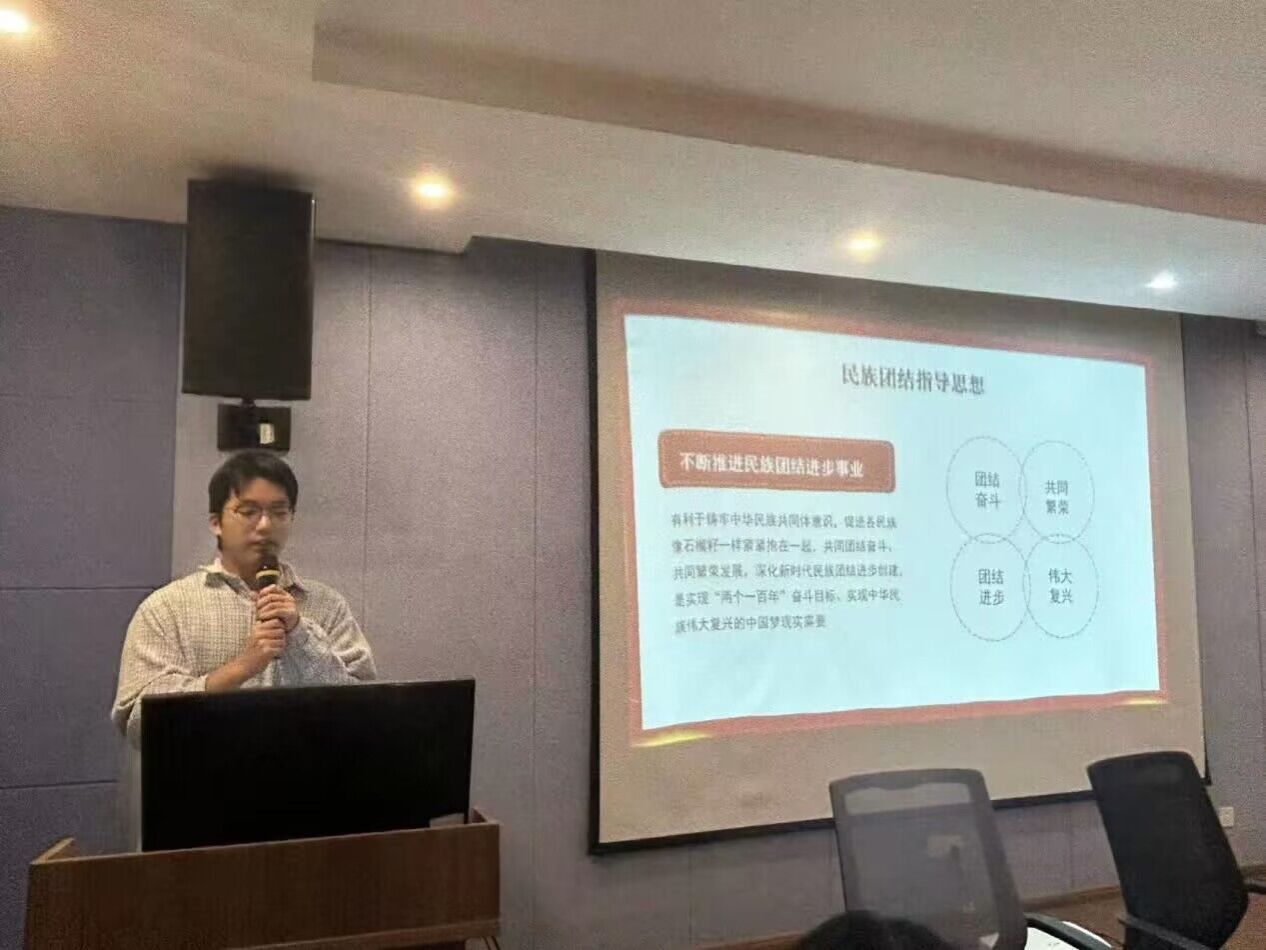 本次团课以“民族团结先进事迹指导思想”为主题,从民族团结指导思想、民族团结先进事迹进行宣讲。余学亮指出民族团结是各族人民的生命线,各民族同胞要手足相亲、守望相助,号召少数民族学生从自身做起,践行民族团结理念。