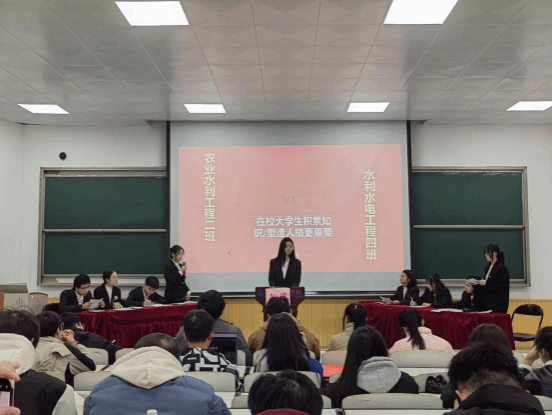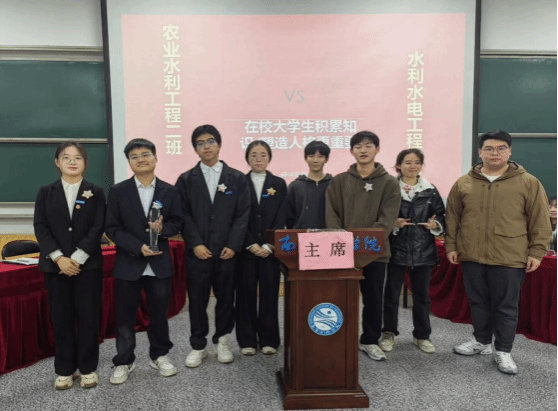 本次比赛以“在校大学生是积累知识/塑造人格更重要”为主题,双方在比赛过程中展现了出色的口才和逻辑思维能力,通过引经据典表达深入的见解,现场气氛十分热烈,为观众带来了一场精彩的智力对决。农业水利工程02班获得最终胜利,选手程爵财获得”最佳辩手”称号。